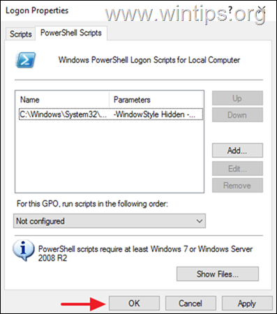 4a。 在“登錄屬性”窗口中,選擇 PowerShell 腳本 選項卡,然後單擊添加。