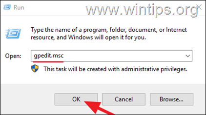 2。在“運行”命令框中,鍵入gpedit.msc並按Enter(確定)打開本地組策略編輯器。