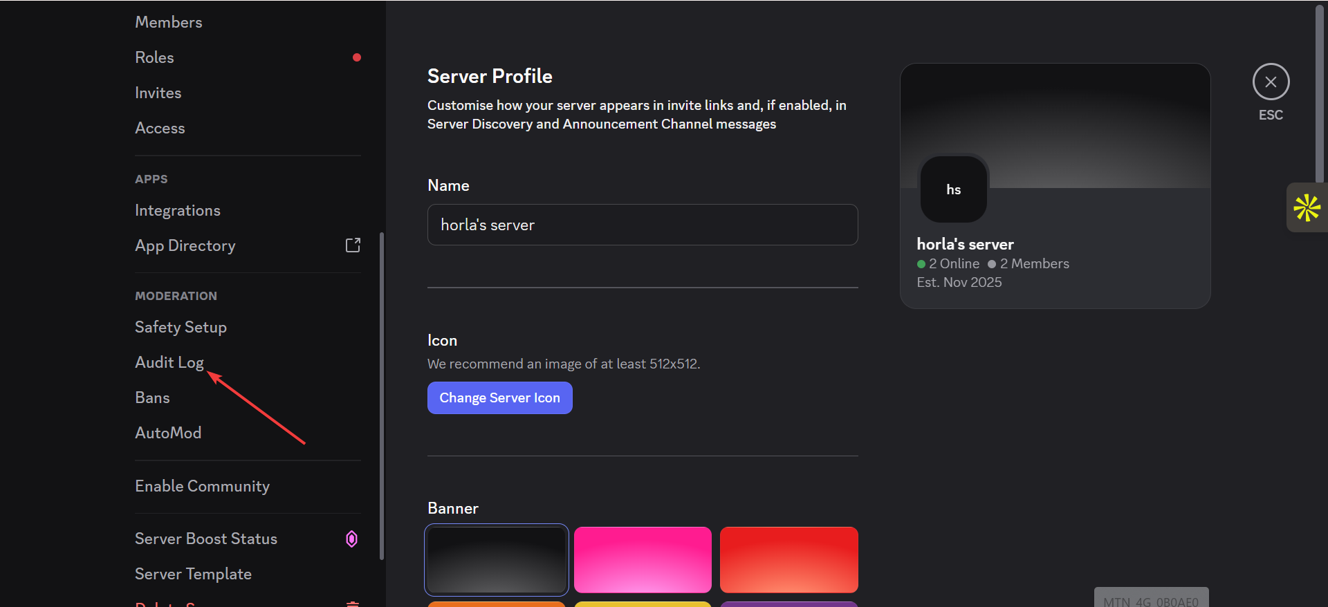 審核日誌跟踪更改服務器的操作,包括禁止、角色更改、頻道編輯和權限更新。只有具有正確角色的管理員和版主才能打開這些日誌。