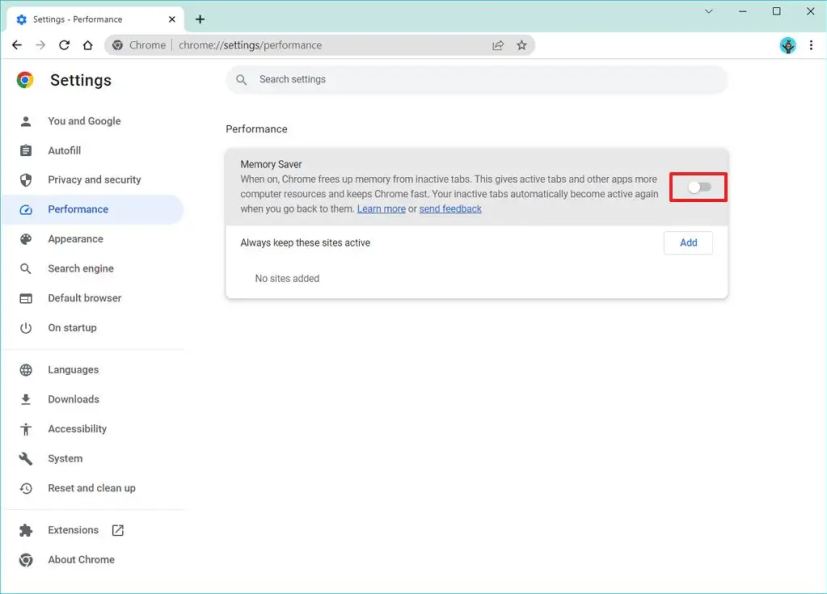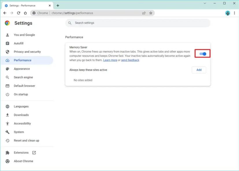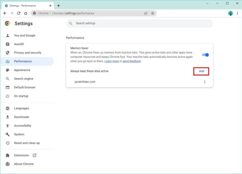完成這些步驟後,Chrome 將繼續停用標籤以節省內存和系統資源,但它會使您指定的網站保持活動狀態。