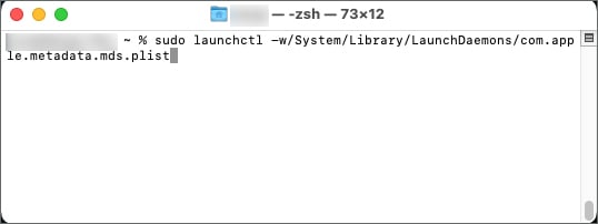 sudo launchctl-w/System/Library/LaunchDaemons/com.apple.metadata.mds.plist