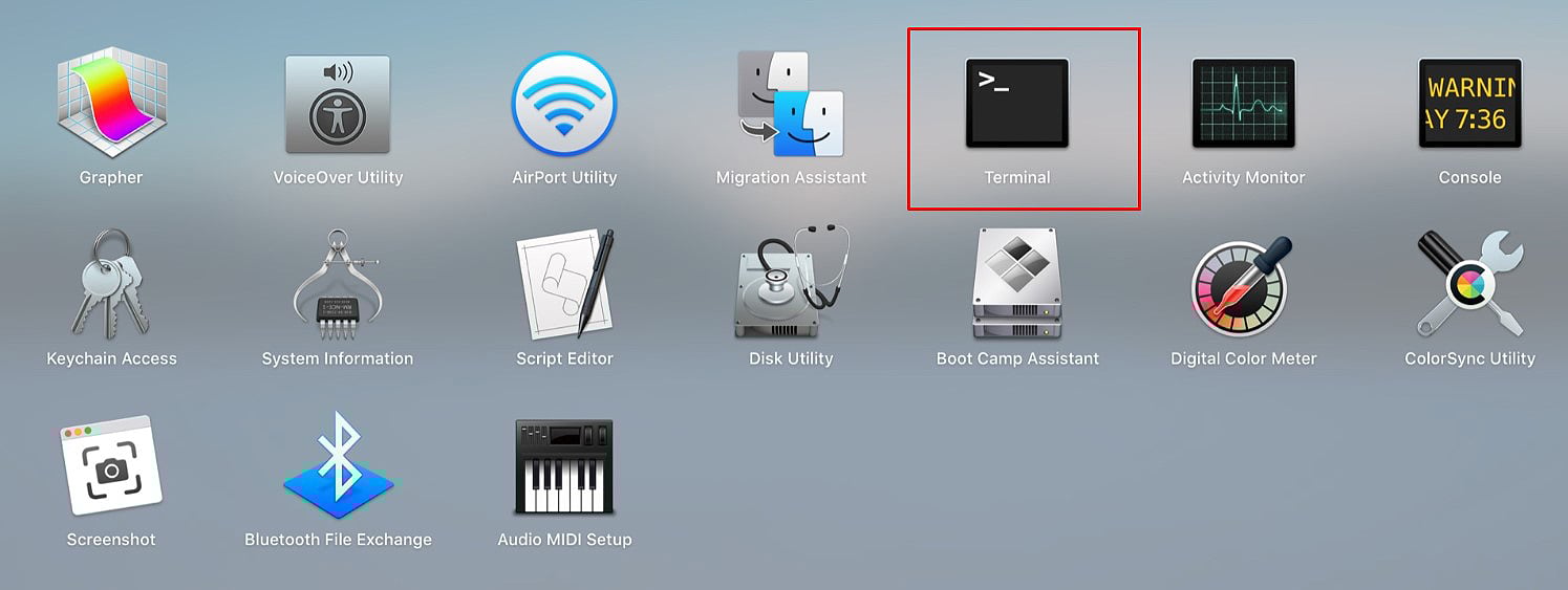 打開 Finder。從左側邊欄中選擇應用程序。打開實用程序文件夾。轉到終端。