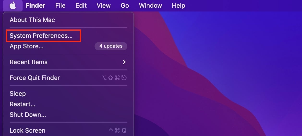 打開 Finder。點擊菜單欄上的 Apple > 系統偏好設置。