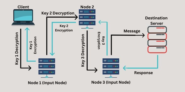 這些層通過網絡節點(稱為洋蔥路由器)進行解密,一次一個,並一路到達目的地。