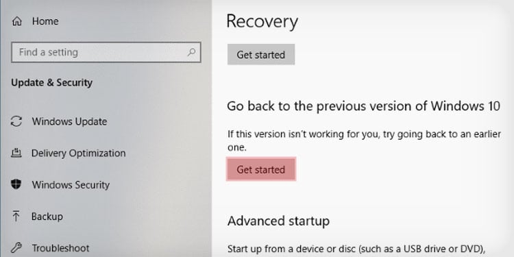 如果您沒有看到該按鈕,則表示在不完全重新安裝的情況下您將無法返回到較早版本的操作系統。但是,您可以在更長時間內卸載更多次要更新。