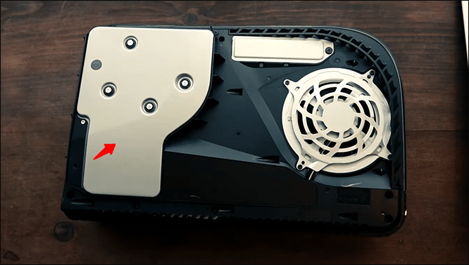 識別PS5 主機的頂蓋很簡單。這是帶有 PlayStation 雕刻標誌的封面。在拆卸和安裝主機蓋時,該徽標還可用作指示器。