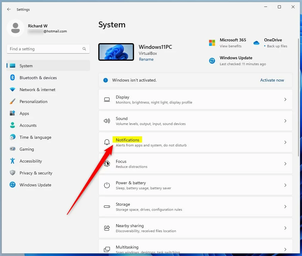 在系統-> 通知設置窗格中,選擇高級設置磁貼以展開.
