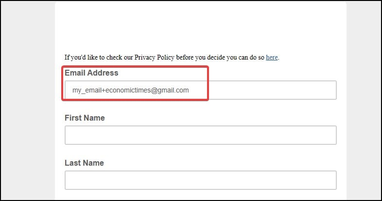 這樣,您將在原始電子郵件中收到來自網站的時事通訊,但您會發現其中包含 +economictimes 部分。將 + 與您嘗試登錄的各個網站一起使用。