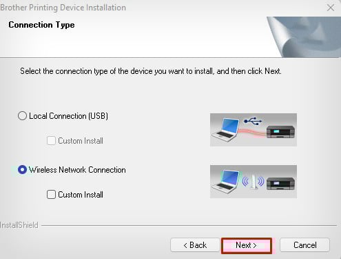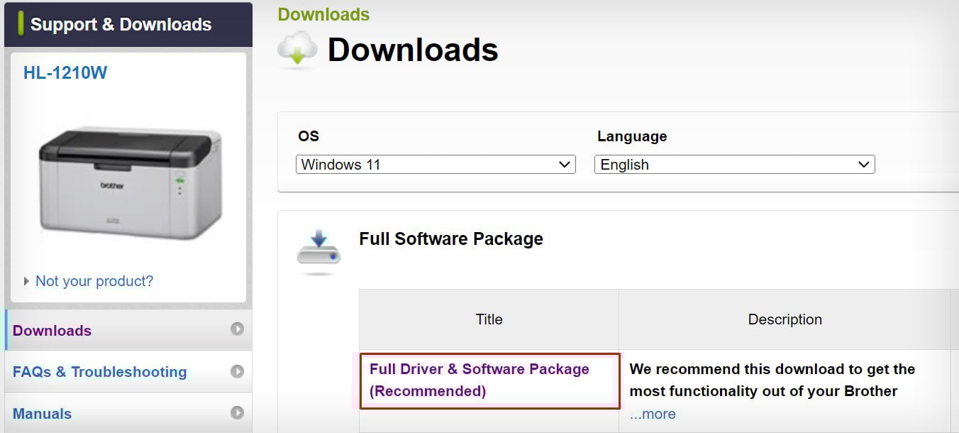 Auf solchen Druckern sollten Sie zuerst das vollständige Softwarepaket für Ihren Drucker von der offiziellen Website von Brother herunterladen und es verwenden, um den Drucker mit Wi-Fi zu verbinden.