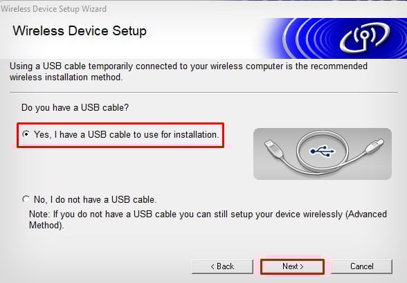 Wählen Sie Ja, ich habe ein USB-Kabel und klicken Sie auf Weiter. Es beginnt nun mit der Suche nach drahtlosen Netzwerken. Aktivieren Sie das Kontrollkästchen neben Geprüft und bestätigt und klicken Sie auf Weiter.
