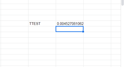 Um das P-Wert (ob eine Reihe von Zahlen statistisch signifikant ist), verwenden wir die T-Test-Funktion. Wenn das Ergebnis niedriger als 0,05 ist, sind die Daten statistisch signifikant. Wenn es höher als 0,05 ist, benötigen wir mehr Daten.