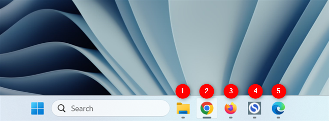 Wenn Sie sich fragen, wie Sie ein Fenster mit der Tastatur in nur einer Bewegung minimieren können (ob es maximiert ist oder nicht), können Sie auch die Tastenkombination Windows + 1 bis 9 verwenden. Zählen Sie die Symbole für Apps, die in Ihrer Taskleiste angeheftet sind, von links nach rechts und notieren Sie die Anzahl der Apps, die Sie minimieren möchten. Im Bild unten entspricht 1 dem Datei-Explorer, 2 mit Google Chrome usw.