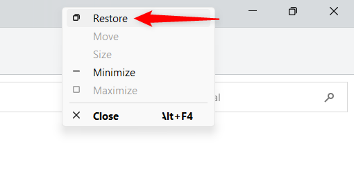 Wenn ein Fenster maximiert ist, können Sie auch die Schaltfläche „Wiederherstellen“ verwenden in diesem Menü, um die vorherige Größe und Position auf Ihrem Bildschirm wiederherzustellen.