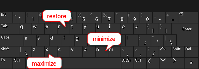 Sobald sich das Menü der Titelleiste öffnet, können Sie die Taste X drücken, um das Fenster zu maximieren, oder die Tastenkombination der Titelleiste verwenden, um ein Fenster zu minimieren: N >. Wenn das Fenster maximiert ist, drücken Sie R auf Ihrer Tastatur, um die vorherige Größe wiederherzustellen.