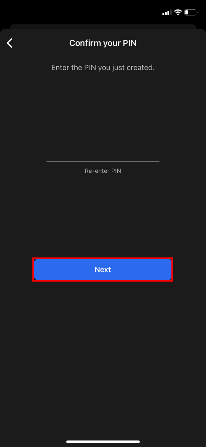 Erstellen Sie eine neue PIN und klicken Sie auf die Schaltfläche „Weiter“.