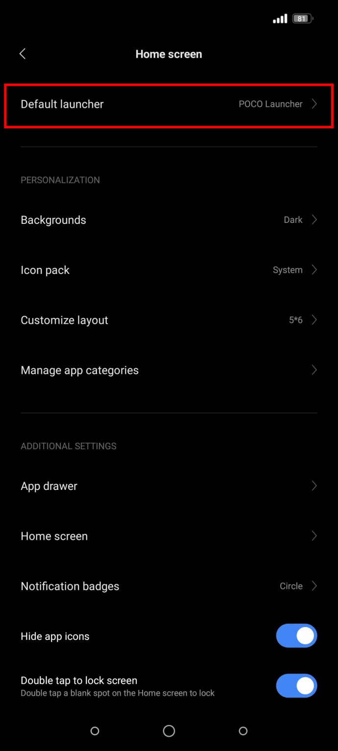 Wenn Sie den Standard-App-Launcher nicht mit ändern können Um die obige Methode zu verwenden, versuchen Sie Folgendes: