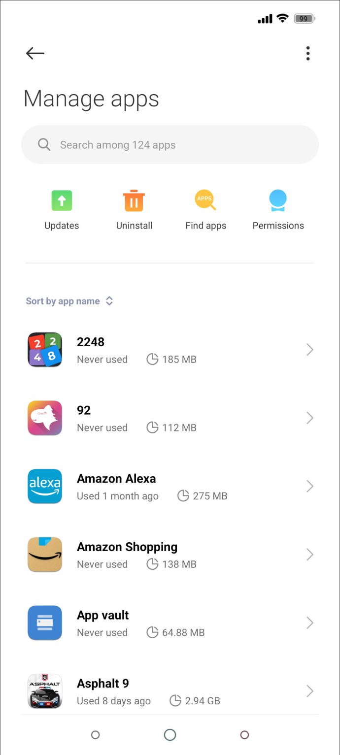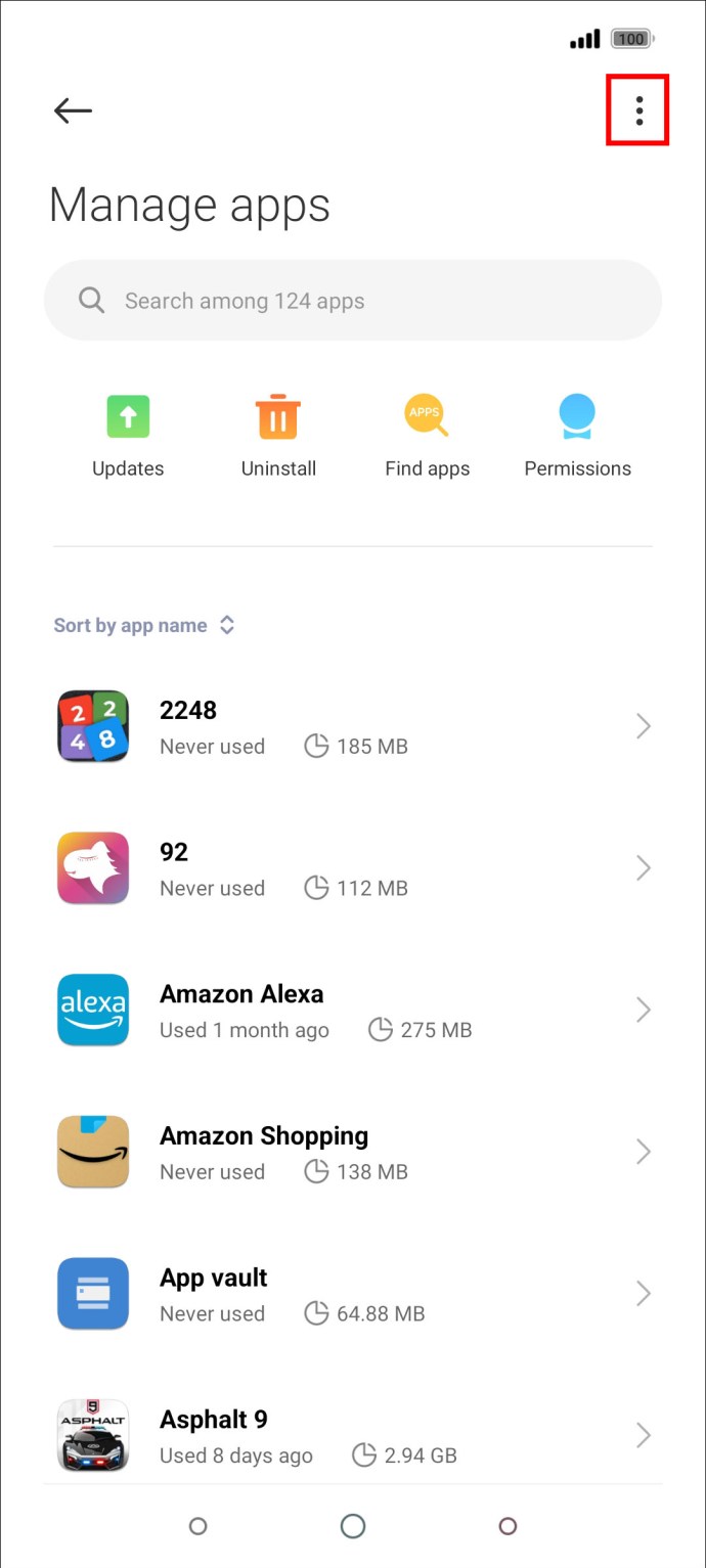 Scrollen Sie nach unten durch die Liste der auf Ihrem Telefon installierten Apps.