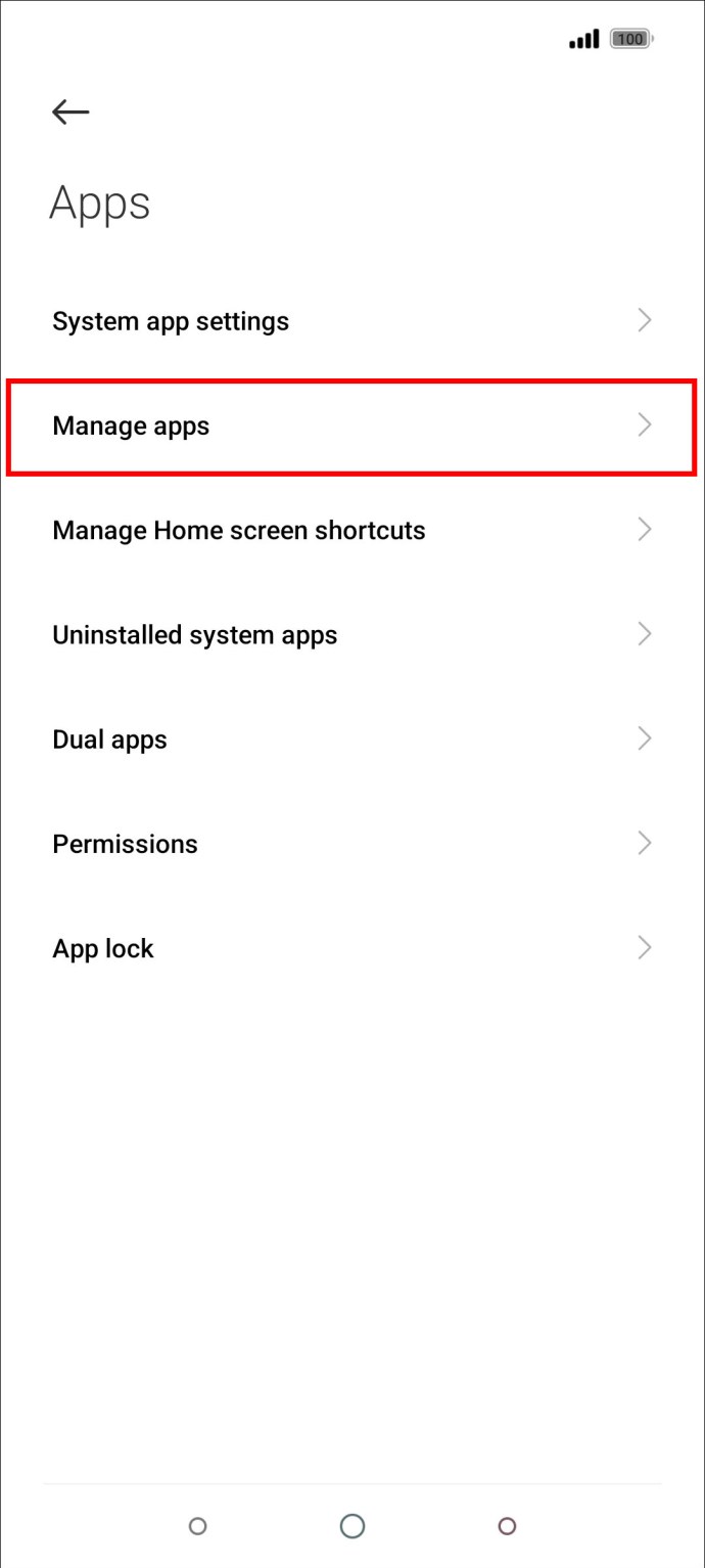 Wählen Sie die Option „Anwendungen“. Wählen Sie „Apps verwalten”.