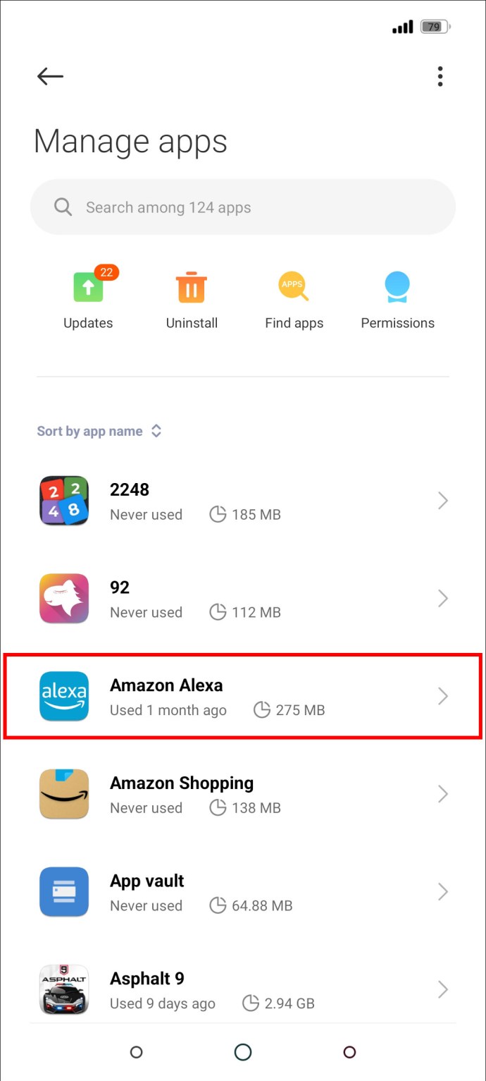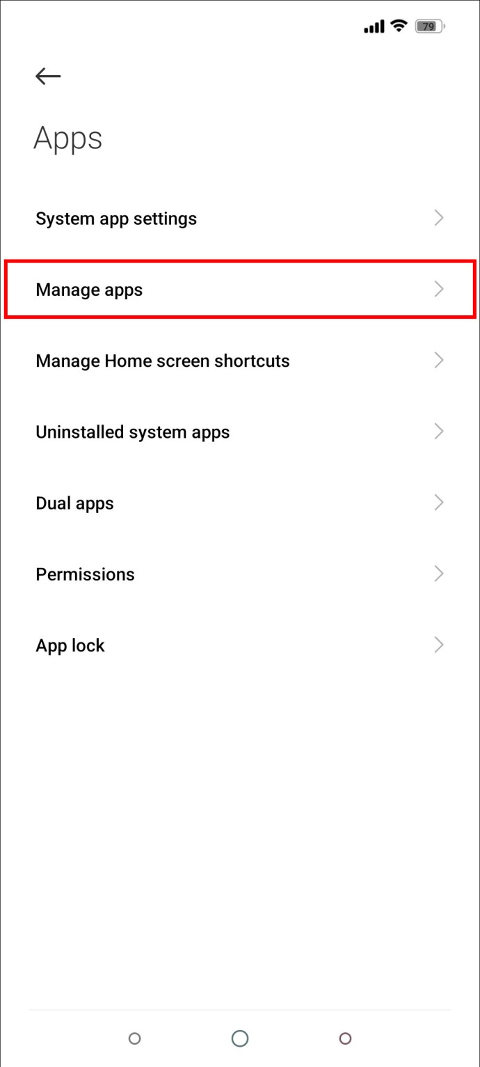 Tippen Sie auf „Apps verwalten“.Wählen Sie die App aus, die Sie ändern möchten, und scrollen Sie zum Ende der Liste.