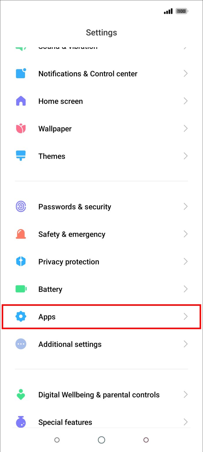 Gehen Sie zu „Einstellungen“.Wählen Sie „Apps”unter App-Einstellungen.