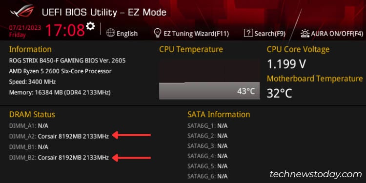 Während Sie sich im ersten Schritt bereits die Spezifikationen angesehen haben, ist es dennoch sinnvoll, die aktuellen Speichereinstellungen zu kennen. Sie können dies sowohl im EZ-als auch im erweiterten Modus Ihres ASUS BIOS tun.