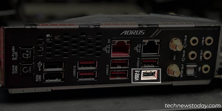 Daher müssen Sie möglicherweise die Spezifikationen überprüfen, wenn dies der Fall ist Version ist nicht beschriftet. Wie in der Abbildung oben gezeigt, verfügt mein Gigabyte AORUS TRX40 MASTER über einen 3.2-Anschluss.
