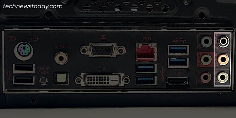 Bei der Inspektion der hinteren E/A-Leiste des Motherboards stellen Sie fest, dass Wahrscheinlich werden Sie auf mehrere 3,5-mm-Anschlüsse stoßen. Diese sind alle für Ihre Audiogeräte gedacht und jedes dient einem anderen Zweck.