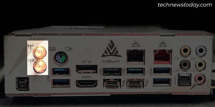 Wird oft als Wi-Fi-Antenne bezeichnet Bei den Anschlüssen handelt es sich um vergoldete runde Steckplätze, die auf High-End-Motherboards vorhanden sind. Sie können eine kompatible Antenne anschließen, um eine zuverlässige Signalübertragung zu erhalten, selbst wenn Sie WLAN auf Ihrem Desktop-Computer in rauen Umgebungen verwenden.