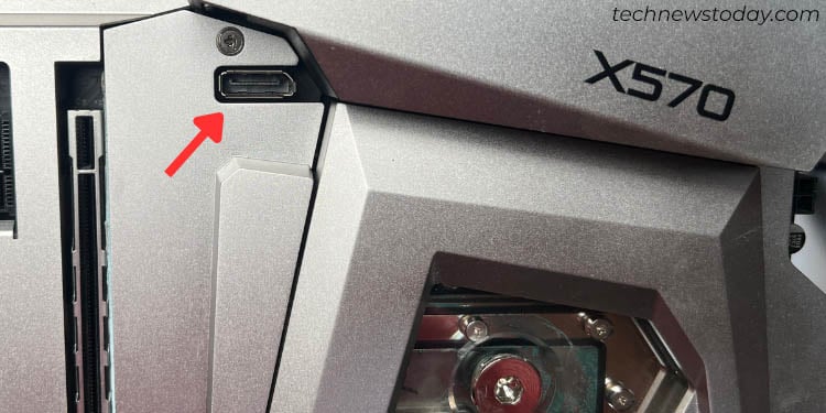 Das ASRock Aqua X570 Board, das ich im Bild oben verwendet habe, verfügt über einen Eingangsanschluss. Ich war verblüfft, als ich in der Mitte dieser Platine einen weiteren DP-IN-Anschluss entdeckte. Beide sind eigentlich für Thunderbolt-Pass-Through. Ich empfehle daher, auf solche Ausnahmen zu achten, wenn Sie ein High-End-Motherboard besitzen.