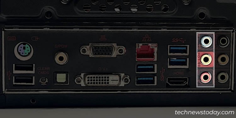 Bei der Inspektion der hinteren E/A-Leiste des Motherboards stellen Sie fest, dass Wahrscheinlich werden Sie auf mehrere 3,5-mm-Anschlüsse stoßen. Diese sind alle für Ihre Audiogeräte gedacht und jedes dient einem anderen Zweck.