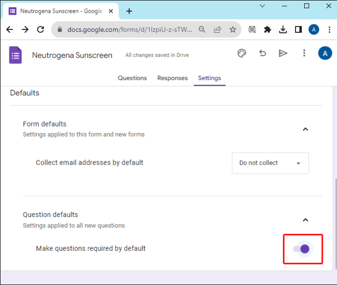 Aktivieren Sie den Schalter für „Fragen standardmäßig als erforderlich festlegen.“
