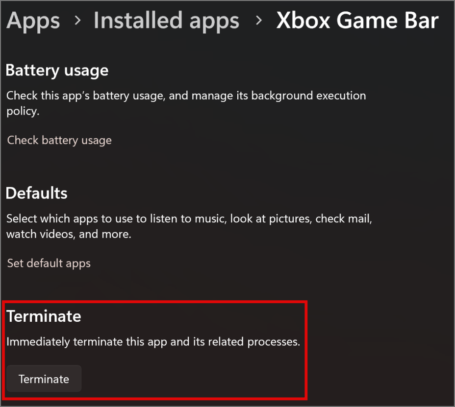 8. Klicken Sie auf Beenden, um alle aktiven Spielleistensitzungen und deren Prozesse zu beenden.