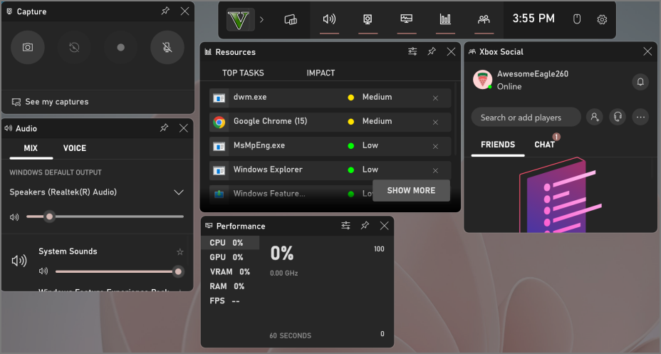 1. Um die Tastenkombination zu ändern, drücken Sie Windows + G, um die Xbox Game Bar zu öffnen.