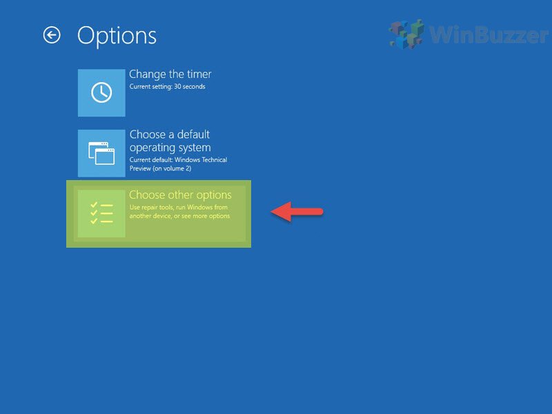 Klicken Sie anschließend auf CWeitere Optionen auswählen, um das Menü mit den erweiterten Startoptionen zu öffnen.