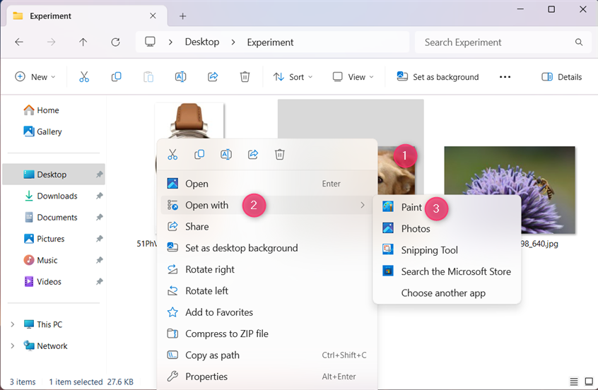Öffnen Sie den Datei-Explorer und navigieren Sie zu dem Bild, dessen Hintergrund, den Sie entfernen und transparent machen möchten. Klicken Sie dann mit der rechten Maustaste darauf (oder halten Sie gedrückt) und gehen Sie zu Öffnen mit > Malen.