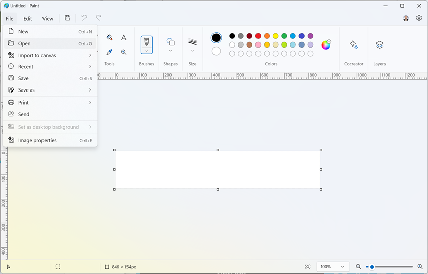 In Paint, gehen Sie zu Datei > Öffnen