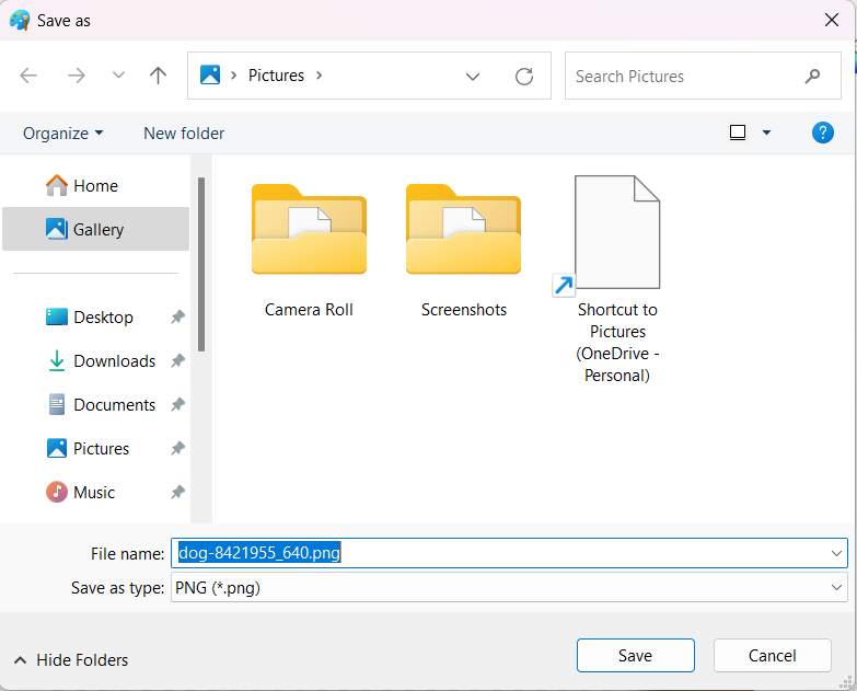 Geben Sie im Fenster Speichern unter den gewünschten Namen für Ihr PNG-Bild ein. Wählen Sie den Speicherort und klicken Sie auf Speichern.