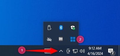 Ein weiteres Ärgernis ist, dass Sie diesen Vorgang nicht abbrechen können und Ihren PC nicht schließen dürfen, sonst geht ihm der Strom aus. Das Einzige, was Sie tun können, ist, den Windows 11-Installationsassistenten zu minimieren und Ihren Computer normal zu verwenden. Um die App wiederherzustellen, klicken Sie auf den Aufwärtspfeil in der Taskleiste (unten rechts in der Taskleiste) und auf das Windows-Symbol.