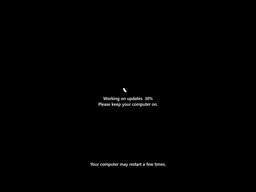 Nach dem Neustart beginnt der Aktualisierungsprozess Der Übergang von Windows 10 zu Windows 11 wird fortgesetzt und Ihr PC wird möglicherweise noch ein paar Mal neu gestartet. Warten Sie, bis es seine Aufgabe erfüllt, und schalten Sie Ihren Computer nicht aus.