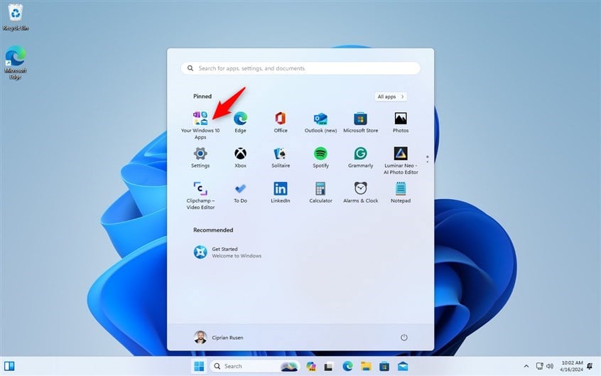 Sobald alles eingerichtet ist, ist Windows 11 betriebsbereit und Sie sehen den Desktop und das Startmenü. Wenn Sie genau hinschauen, sehen Sie im Startmenü einen Ordner mit dem Namen „Ihre Windows 10-Apps“. Darin finden Sie die auf Windows 11 migrierten Windows 10-Apps.