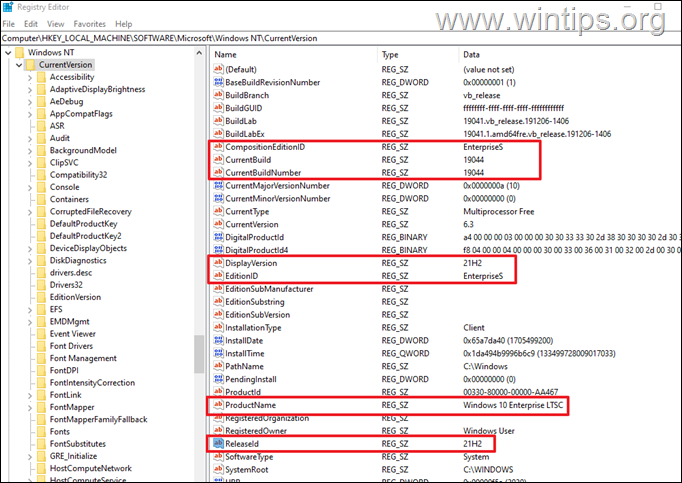 19044 CurrentBuildNumber 19044 DisplayVersion 21H2 EditionID EnterpriseS ProductName Windows 10 Enterprise LTSC ReleaseId 21H2