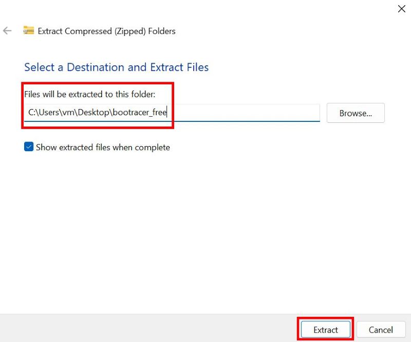 Zuerst gehen Sie zur offiziellen Website und laden Sie BootRacer herunter, indem Sie auf die Schaltfläche „Herunterladen“ klicken. Klicken Sie anschließend im Datei-Explorer mit der rechten Maustaste auf die heruntergeladene Datei und wählen Sie die Option „Alle extrahieren“.