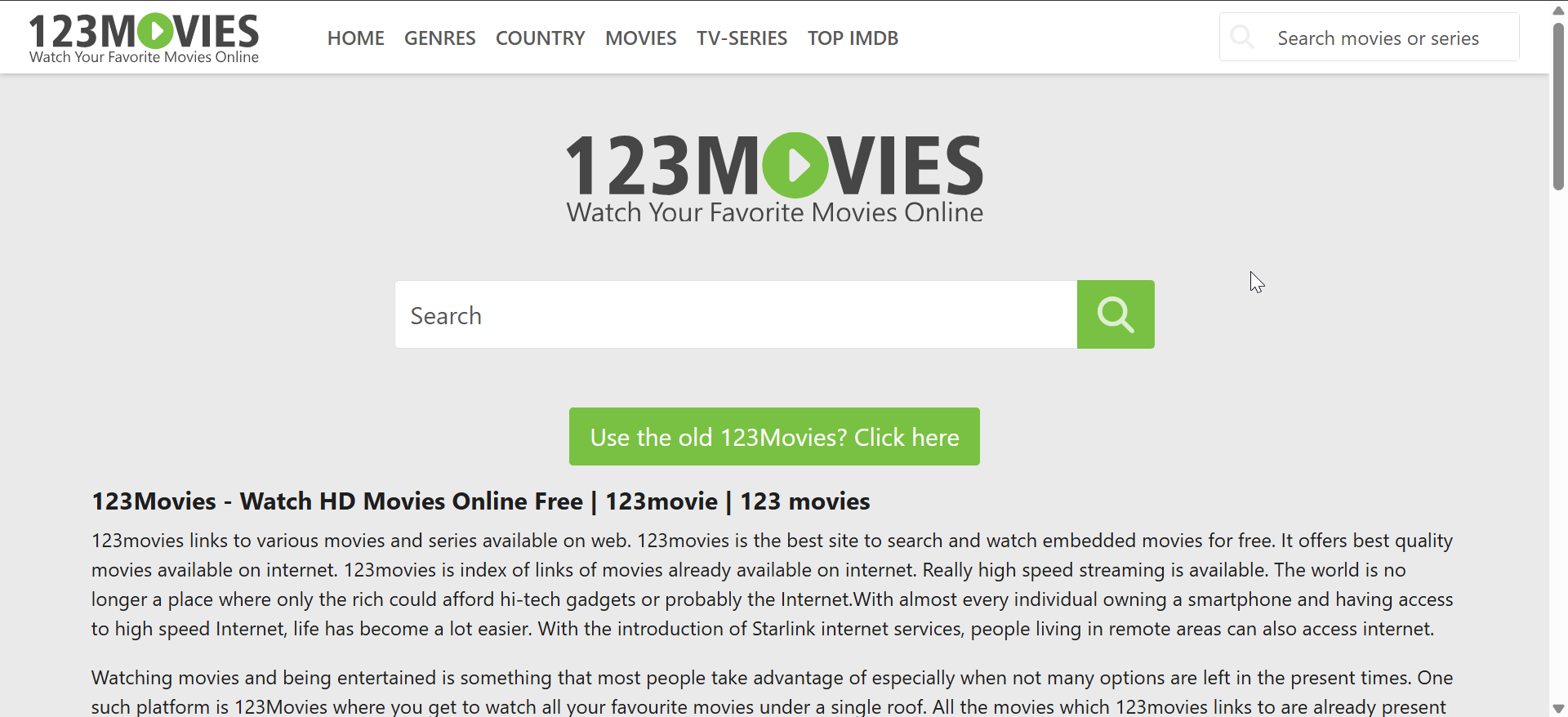 123Movies ist eine der beliebtesten Alternativen zu Putlocker. Es bietet eine umfangreiche Sammlung von Filmen und Fernsehsendungen in HD-Qualität. Die übersichtliche, einfach zu navigierende Benutzeroberfläche der Website ermöglicht Benutzern das Durchsuchen nach Genre, Erscheinungsjahr und IMDb-Bewertung.