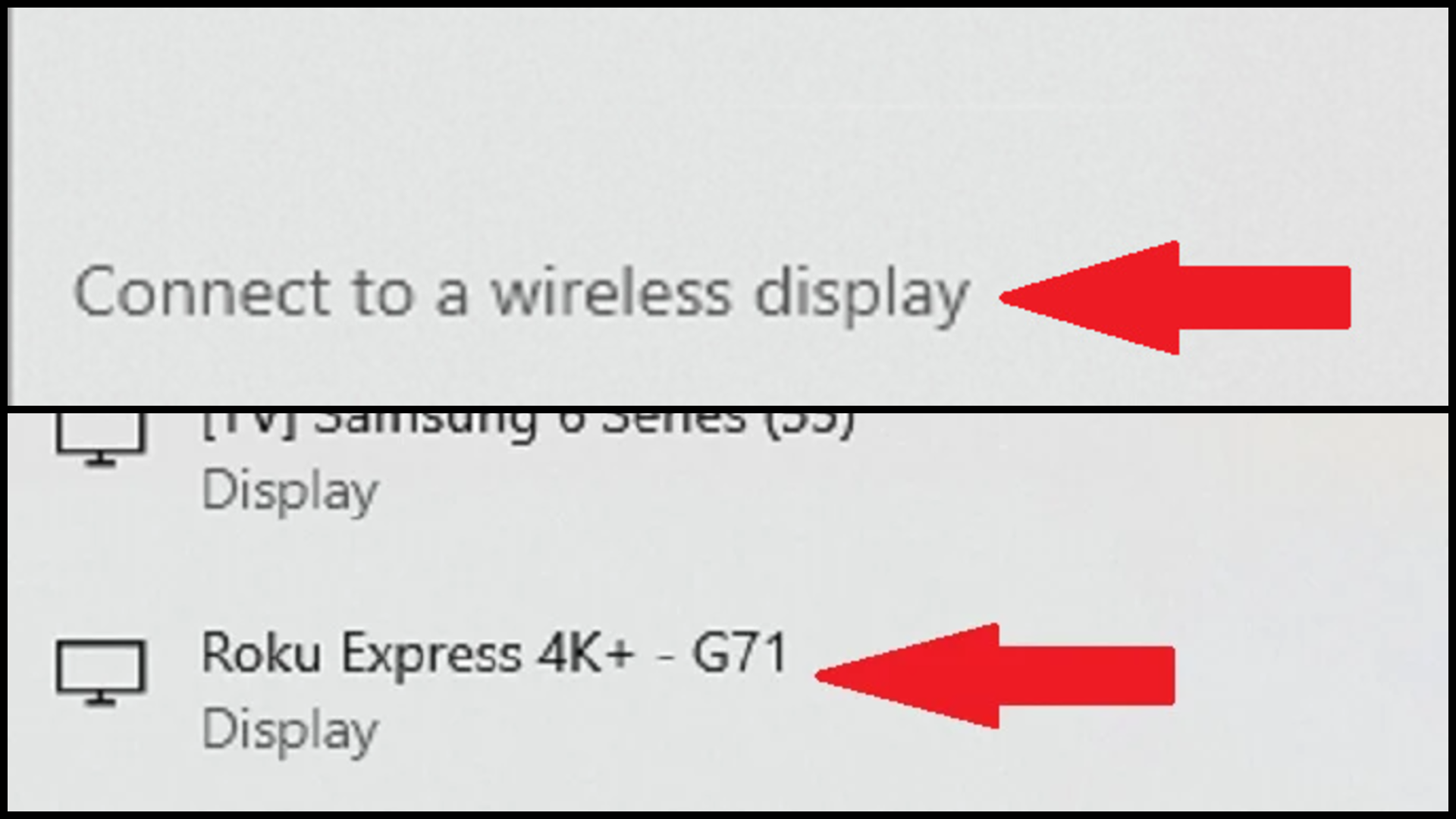 Klicken Duplizieren, dann Mit einem drahtlosen Display verbinden und dann Ihren Roku-Fernseher auswählen.