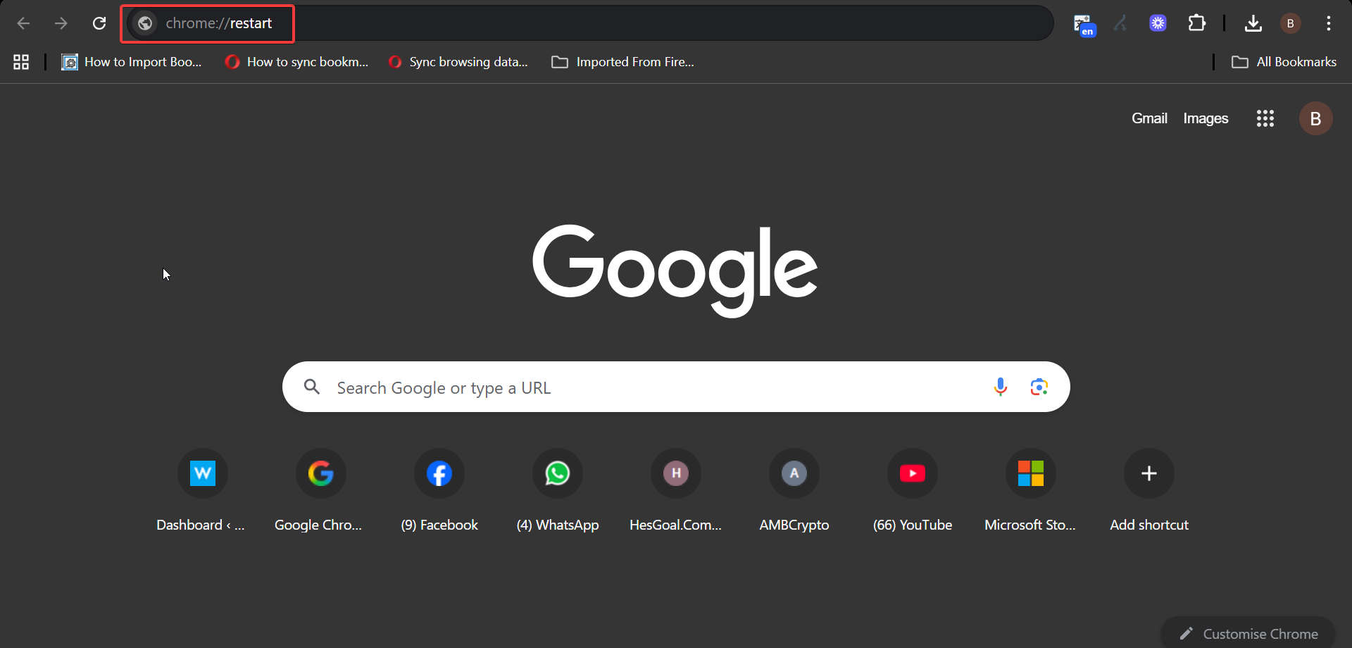 Eine der schnellen Möglichkeiten, Chrome neu zu starten, ist die Verwendung der Adressleiste. Fügen Sie einfach den Befehl chrome://restart ein, drücken Sie die Eingabetaste, und Ihr Browser wird neu gestartet und alle Ihre vorherigen Tabs werden wiederhergestellt.