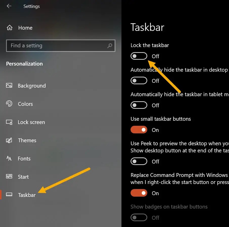 Im rechten Bereich schalten Sie den Schalter „Taskleiste sperren AUS. Durch Deaktivieren der Option wird die Taskleiste entsperrt. Das ist alles. So einfach ist das.