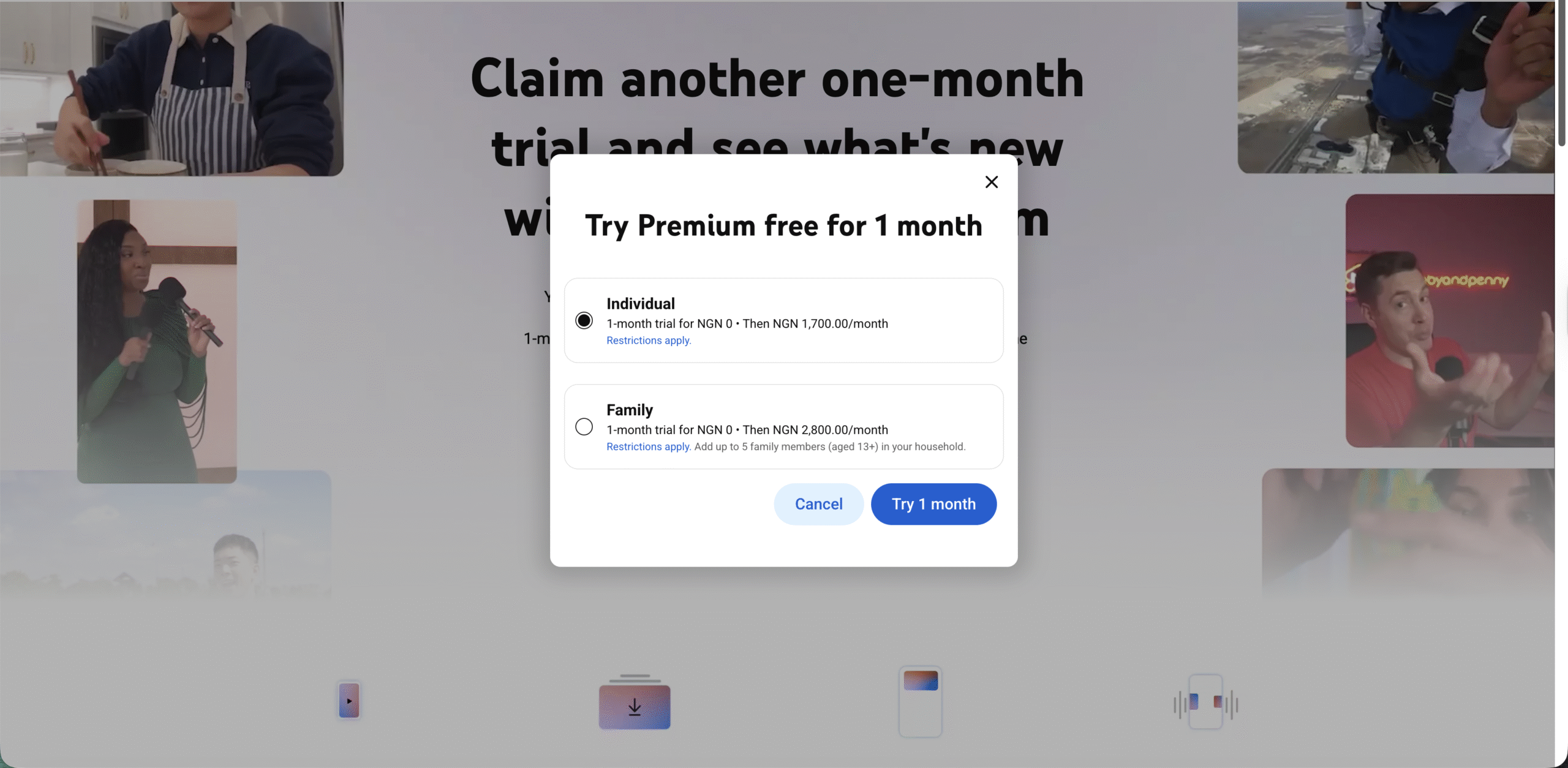 Neue Nutzer erhalten oft eine kostenlose YouTube Premium-Testversion mit einer Laufzeit von etwa einem Monat.