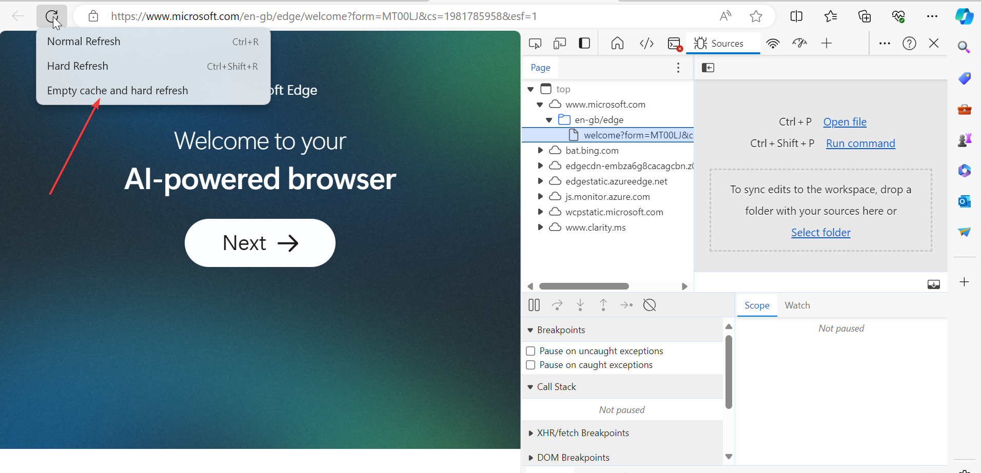 Wenn Sie Edge verwenden, drücken Sie Strg + F5 oder öffnen Sie die Entwicklertools, klicken Sie mit der rechten Maustaste auf das Aktualisierungssymbol und wählen Sie „Cache leeren und neu laden“. Auch bei Safari ist es etwas anders. Drücken Sie in Safari für Mac Option + Befehl + R, um den Cache zu umgehen und einen Hard-Reset durchzuführen
