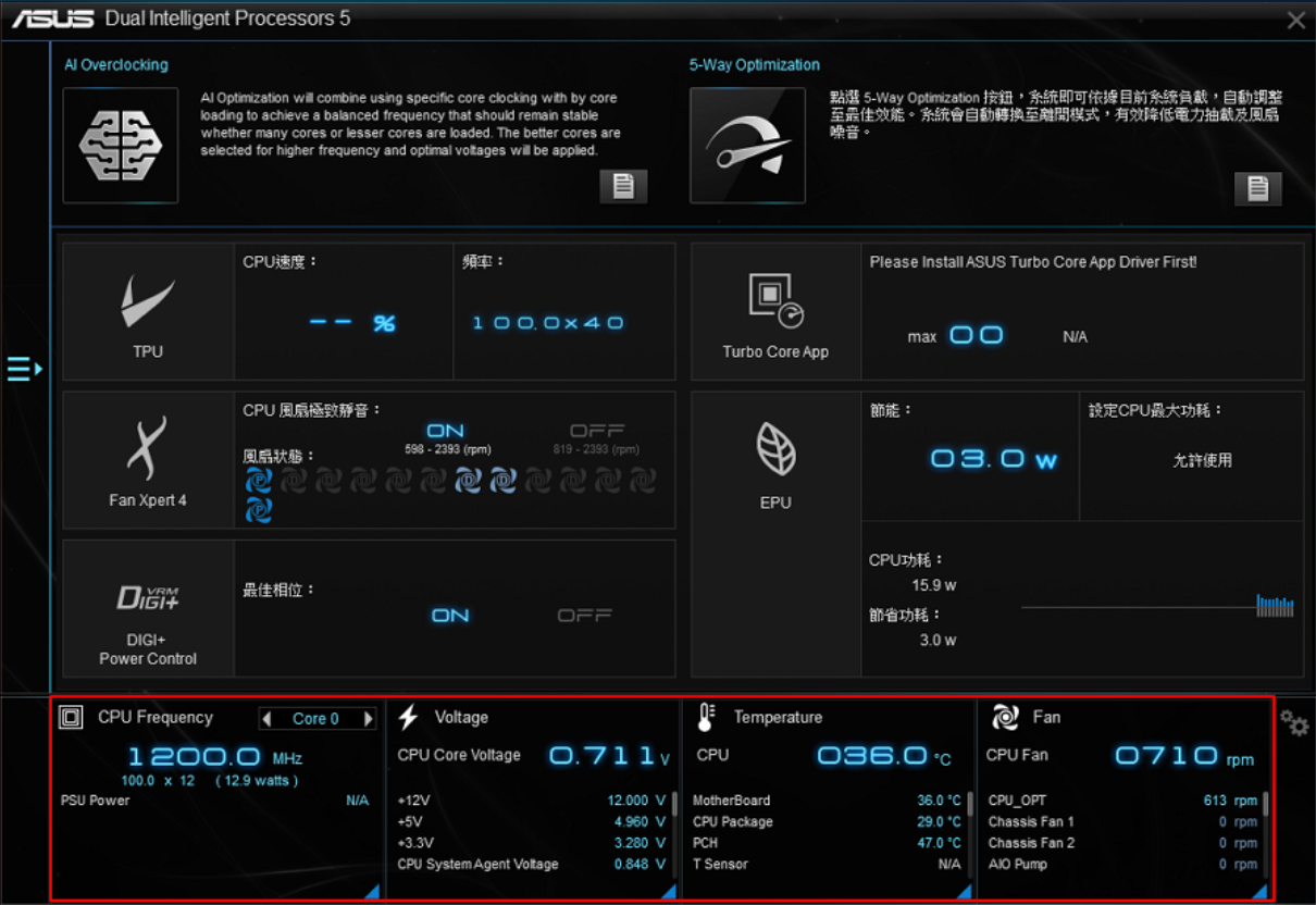 ASUS AI Suite 3 bietet automatisches CPU-Tuning für ASUS-Motherboards. Die Software analysiert die Kühlung Ihres Systems und erhöht die Taktraten durch ihre 5-Wege-Optimierungs-Engine. Es bietet Leistungssteigerungen mit einem Klick ohne manuelle Abstimmung.
