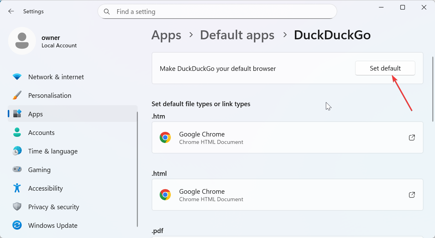 Windows ermöglicht Ihnen, DuckDuckGo als Standardbrowser zuzuweisen, sodass alle Links, Apps und Webdateien darüber geöffnet werden.